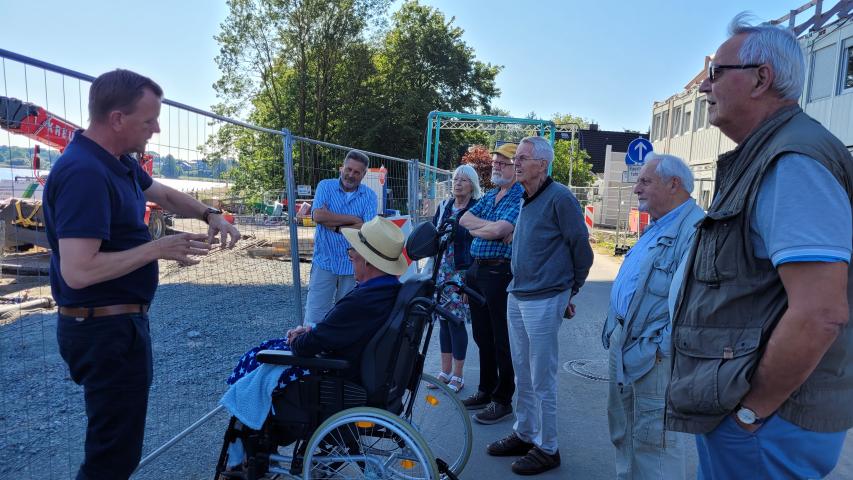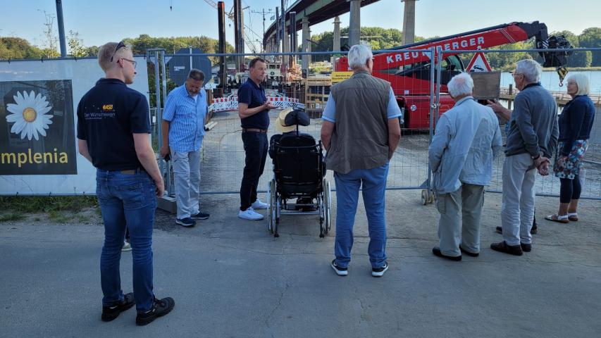 Jedes Mal, wenn Herr G. von seinem Sohn im Seniorenheim besucht wird, bringt dieser neue Bilder und Geschichten von der Baustelle mit, die Herr G. voller Spannung verfolgt. Wie gerne würde er selbst diese Baustelle doch einmal mit eigenen Augen sehen können. Dieser Wunsch sollte nicht unerfüllt bleiben. Zu seinem kürzlichen Geburtstag bekam Herr G. einen Gutschein für eine persönliche Führung über den Bau der Rader Hochbrücke von seinem Sohn geschenkt. Und um diese Fahrt zu ermöglichen, kam nun der Wünschewagen ins Spiel.