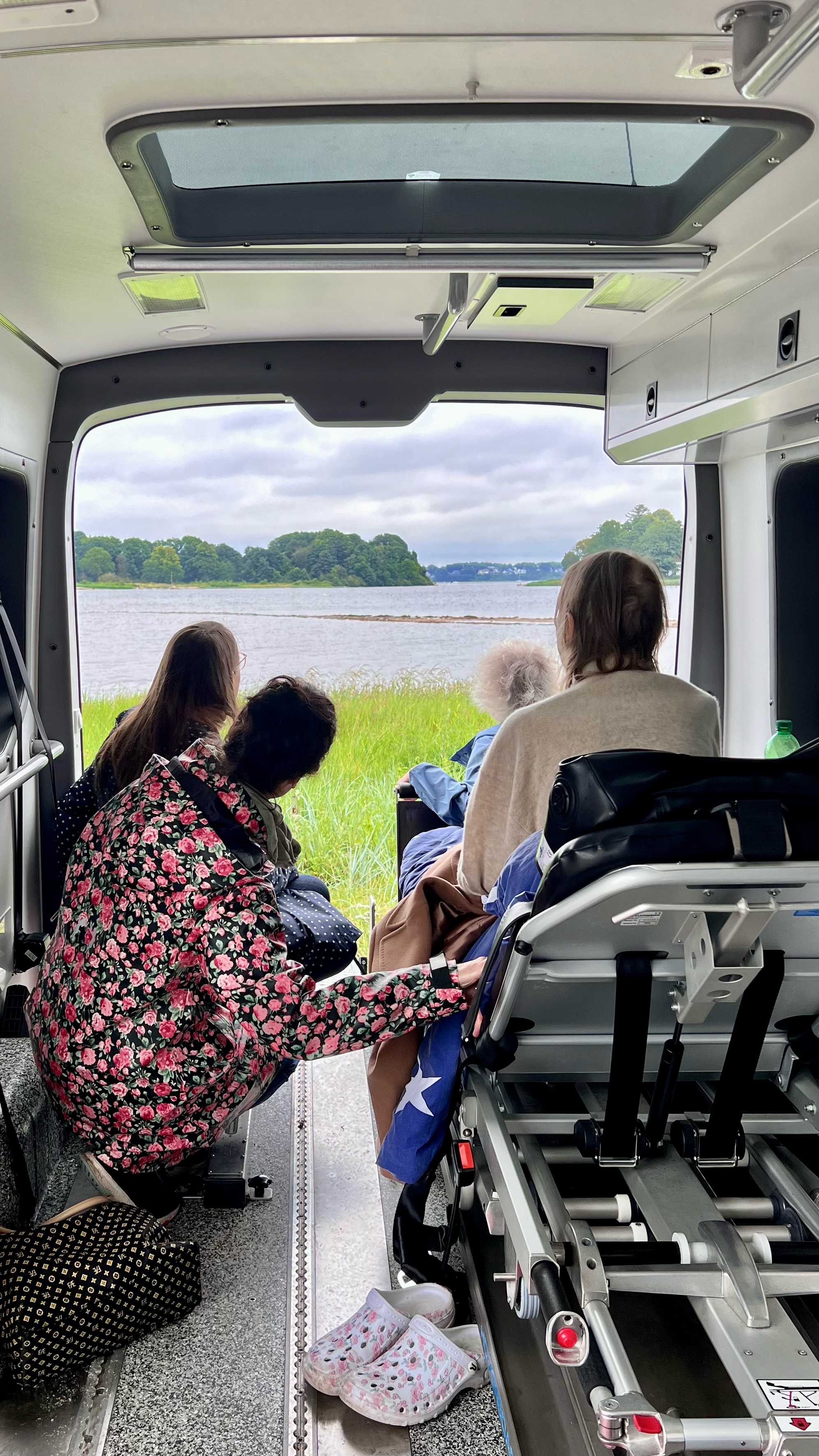 Nach einer kurzen Übergabe an die zuständige Pflegekraft wurden Gunnar und ich von Uta und ihrer Tochter Sylvia herzlich empfangen. Uta, unsere sympathische Fahrgästin, begrüßte uns mit einem warmen Lächeln. Wir erklärten ihr die verschiedenen Transportmöglichkeiten des Wünschewagens. Sie entschied sich für den Transportrolli, um bequem auf der Trage Platz zu nehmen.