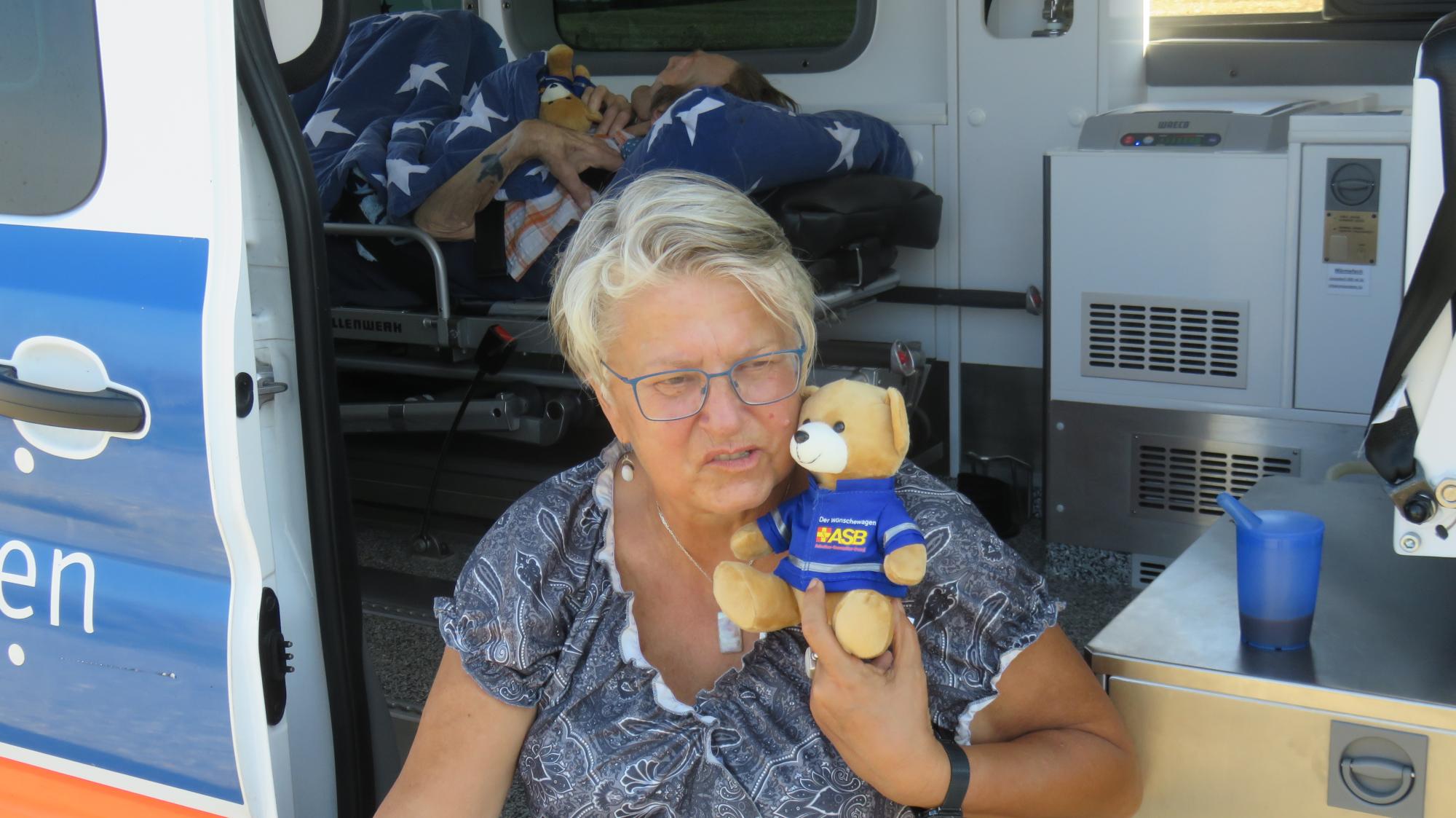 Hajo, schwer krank und zunehmend schwächer, musste liegend auf der Trage des Wünschewagens transportiert werden. Trotz seiner körperlichen Verfassung war es ihm ein Herzenswunsch, noch einmal die Ostsee zu sehen, die frische Meeresluft zu spüren und mit Marga an den Orten zu verweilen, die für beide so viel bedeuteten. Es war ein heißer Tag, und die Wunscherfüller taten alles, um Hajo so angenehm wie möglich durch den Tag zu begleiten – ein ASB-Schirm schützte ihn vor der Hitze, und kleine Pausen ermöglichten es, sich immer wieder zu erholen.