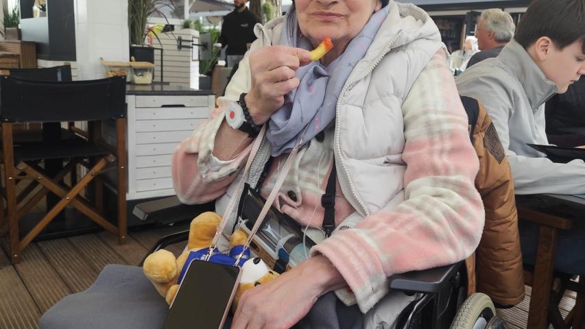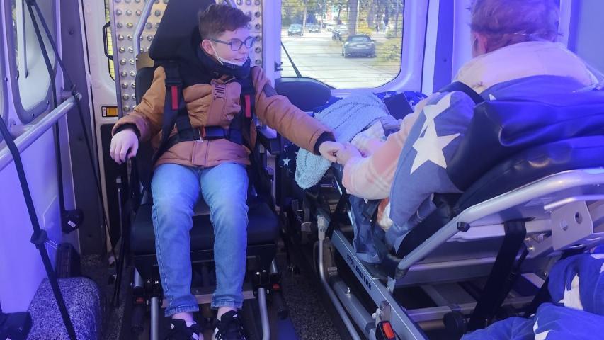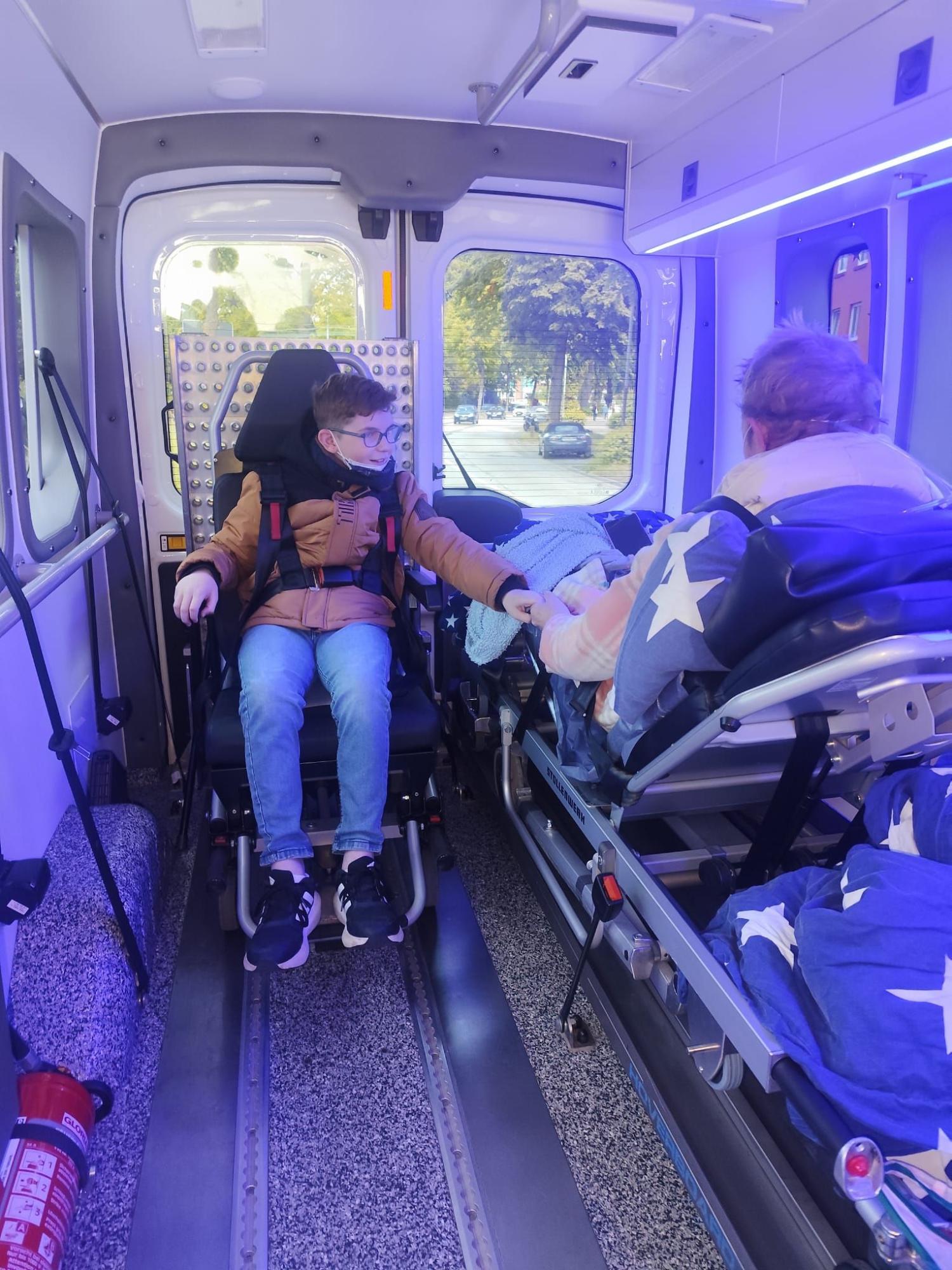 Wir wurden herzlich begrüßt und von den Palliative-Care-Schwestern in das liebevoll eingerichtete Zimmer von Frau B. begleitet. Die Aufregung war im ganzen Raum zu spüren – die Kinder und der Enkel waren schon da und warteten, dass es losgehen kann. Nach einem herzlichen Kennenlernen machten wir uns auf den Weg nach Scharbeutz zur neuen Seebrücke. Maxi, der Enkel von Frau B., wollte unbedingt bei seiner Oma sitzen. Wir zeigten ihm den Wünschewagen, und er ließ sich alle Technik genau erklären. Dann half er dabei, es seiner Oma so bequem wie irgendwie möglich zu machen.