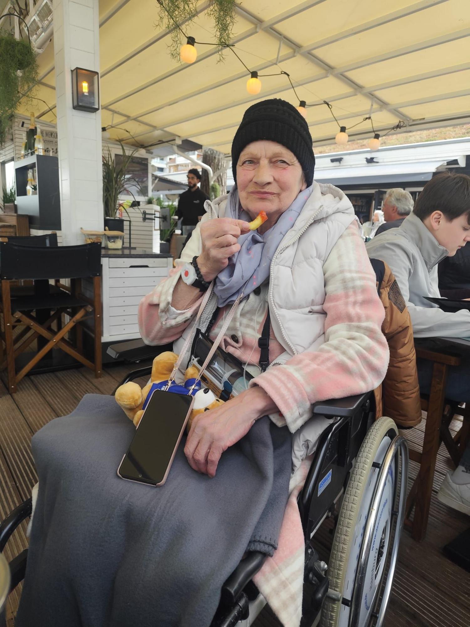 Zum Essen zog es uns in eine Strandbar – es gab Pommes und alles, was das Herz begehrte. Die Müdigkeit war Frau B. anzusehen. Bevor es zum Wünschewagen zurückging, bummelten wir noch über die Strandpromenade. Ein Besuch beim Italiener für ein Eis rundete den Tag ab, bevor es wieder zurück ins Hospiz ging.
