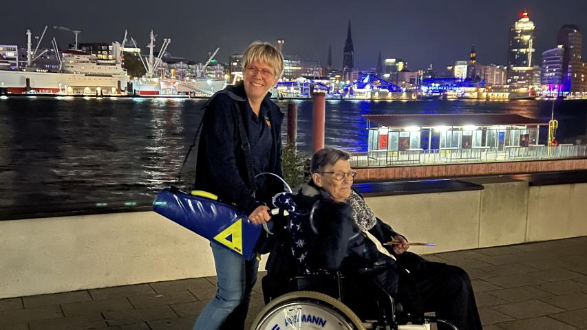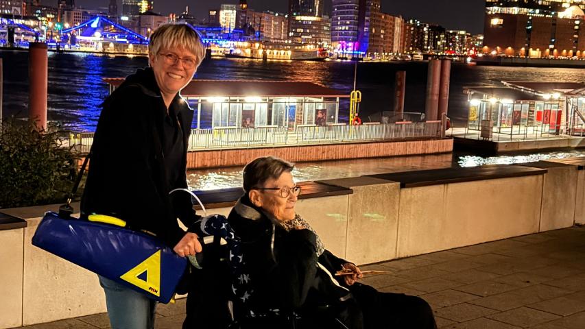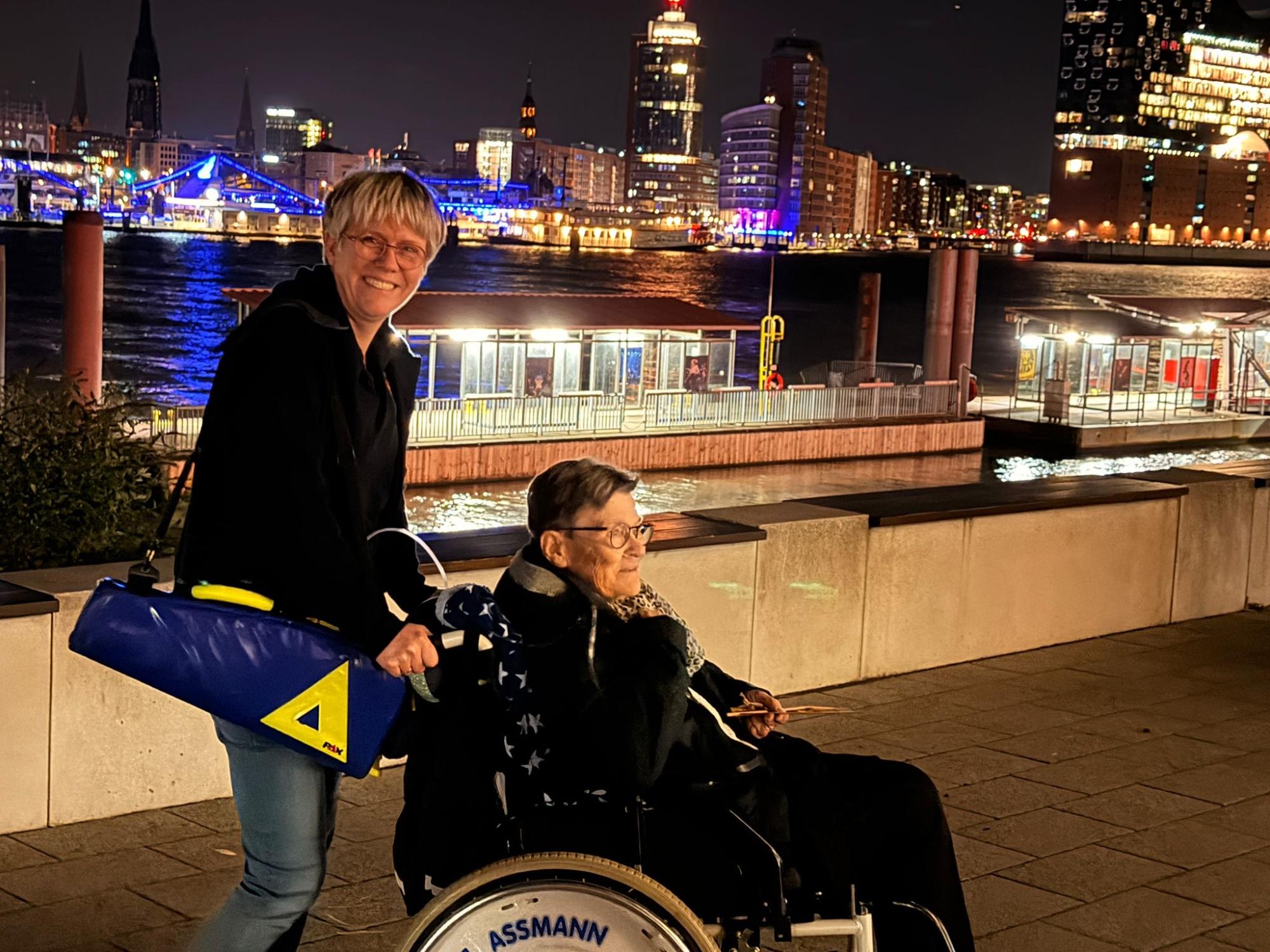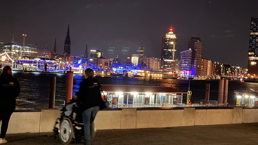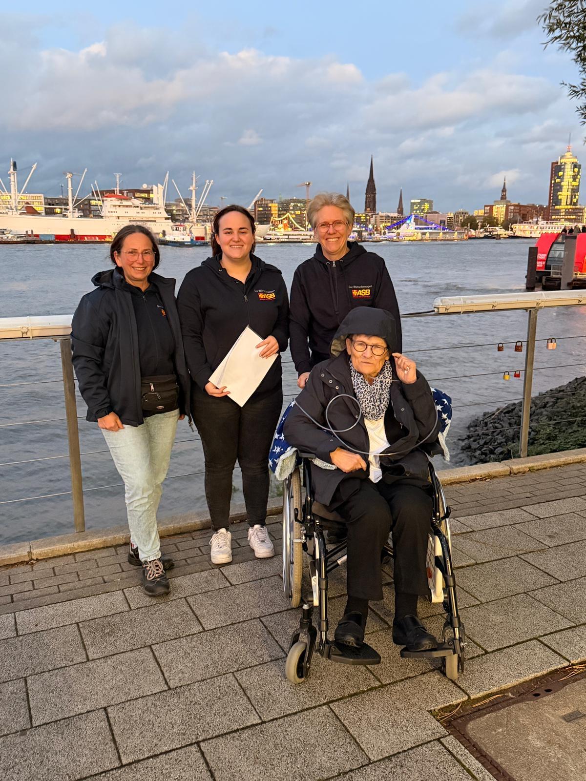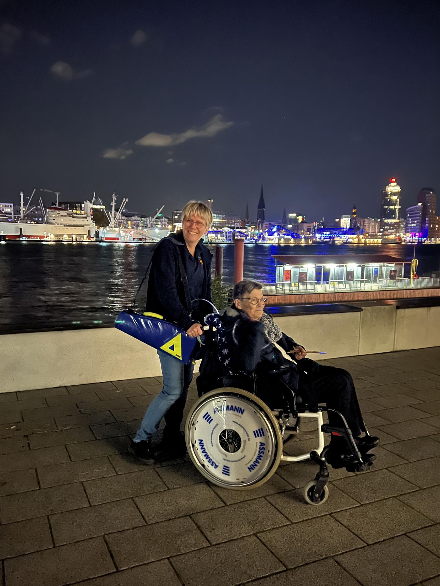 Mit Sturmtief Joshua im Nacken fuhren wir zum Albertinen-Hospiz nach Norderstedt, wo wir von unserer Fahrgästin Karin und ihrer Schwiegertochter Sylvia sehnsüchtig und aufgeregt erwartet wurden. Durch den typischen Hamburger Verkehr fuhren wir im Stop-and-go auf die andere Elbseite. Das Musical König der Löwen war angesagt. Wir waren recht früh da, sodass wir vor der Vorstellung noch einen kleinen Snack zu uns nehmen konnten. Karin genoss ihr Eis, dann wurden wir durch den Nebeneingang zu unseren Plätzen geführt.