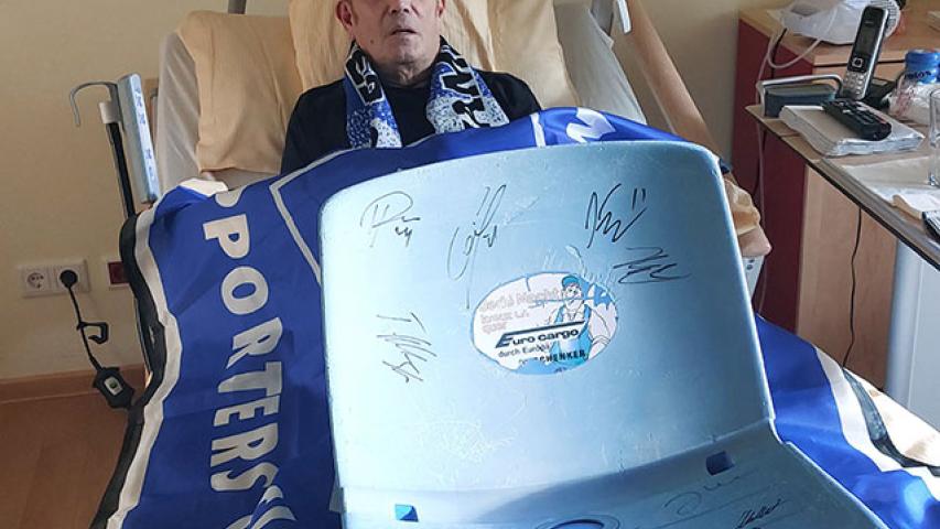 In der Halbzeitpause kam ein Team der PR-Abteilung des HSV zu unserem Fahrgast, um Fotos zu machen – und sie brachten Fan Jürgen und seiner Frau einen ausgedienten Stadionsitz mit, auf denen sich die Spieler des HSV mit Ihren Unterschriften verewigten hatten.