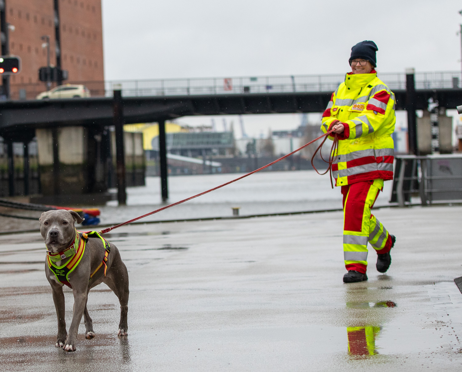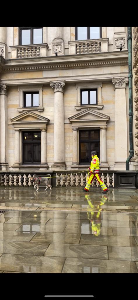 Sonntag morgen starteten wir in Hamburg City. Von der B4, über sämtliche Brücken, durch kleine Hinterhöfe gelangten die Hunde von A nach B. Weiter rein bis in die Speicherstadt, Hamburg Dungeon bis in die HafenCity und den Sandtorhafen an die Anleger. Dann vorbei an einem Boot, welches seeeehr interessant war. Die Brücke vom Anleger zum Boot war aber nicht ausgelegt, so musste man ein Stück aufs Boot springen. Einmal ums Eck auf dem Boot saß auch schon die versteckte Person! Vertrau Deinem Hund...