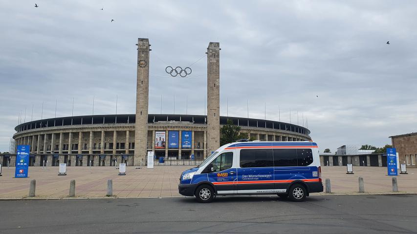 Sonntag machten wir uns nach dem Frühstück mit dem Wünschewagen auf den Weg zum Olympiastadion. Weil es am Abend davor ein Fußballspiel gab, war das Stadion noch nicht geöffnet. Wir überbrückten die Zeit mit einem Spaziergang um das Stadion, fingen Pokemons und machten eine Pause beim Glockenturm. Mit dem Aufzug auf der 77 Meter hohen Aussichtsplattform angekommen, hatten wir einen traumhaften Blick auf Berlin und das Olympiastadion.