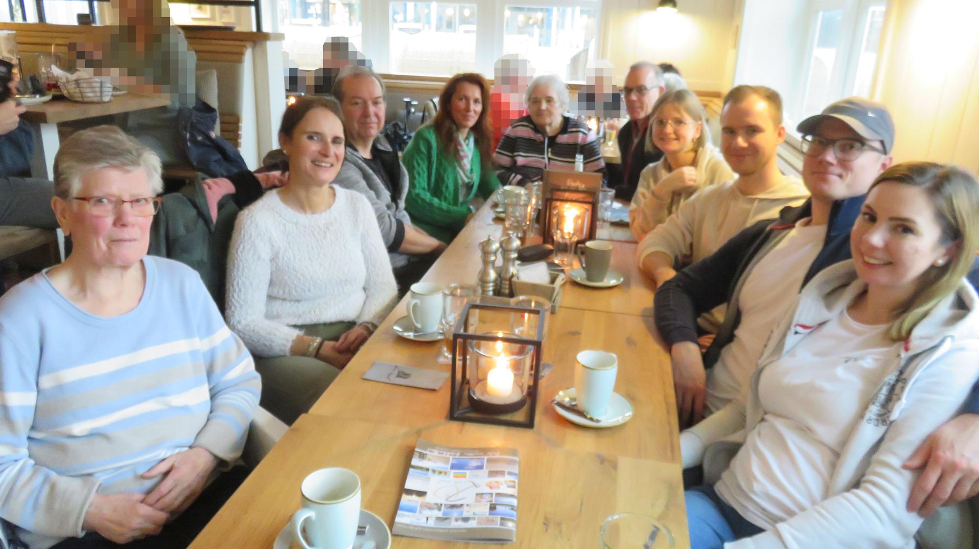 Das Familientreffen mit ihren Kindern und Enkelkindern hat sie in vollen Zügen genossen. Im Kreise ihrer Lieben fühlte sie sich sichtlich wohl und wirkte ab und zu richtig verträumt. Ein gemeinsamer Spaziergang zur Seebrücke und durch den Ort musste leider im Regen stattfinden. Aber auch das konnte die gute Laune nicht vermiesen.
