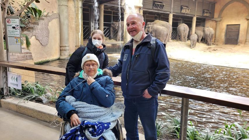 Bereits am 30. März machte sich unser Wunscherfüllerteam Belinda und Jonas auf den Weg in Richtung Kieler Förde, wo unser Fahrgast Frau P. schon sehnsüchtig wartete. Gemeinsam mit ihrem Ehemann, ihrer Tochter und ihrem Sohn sollte es nach Hamburg in den Tierpark Hagenbeck gehen.