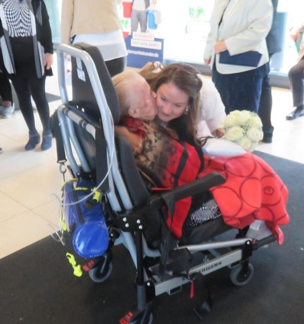 Die Vorfreude auf die Hochzeit ihres Enkels hat Frau Z. in den letzten Wochen sehr viel Kraft und Lebenswillen gegeben. Als es dann aber gesundheitlich so schnell bergab ging, dass die Teilnahme auf normalem Wege nicht mehr möglich war, musste schnell der Wünschewagen her, um den sehnlichen Wunsch der schwerkranken 84-jährigen Hamburgerin zu erfüllen.