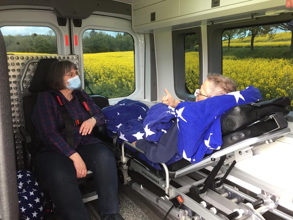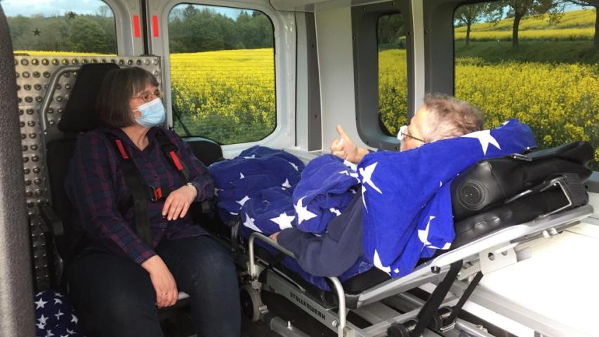 Meine persönlichen Gedanken zu der Fahrt: Herr N. konnte verbal nicht mehr kommunizieren, er hat seine Bedürfnisse und Wünsche schriftlich oder mit "Daumen hoch" oder "Daumen runter" mitgeteilt. Wobei der "Daumen hoch" unsere Fahrt begleitet hat! Und das hat mich sehr berührt. Das ist genau das der Grund ist, warum ich mich für dieses wunderbare und sinnvolle Ehrenamt entschieden habe. Menschen am Lebensende mit ein wenig von meiner Zeit etwas zu ermöglichen, was so kostbar und wertvoll für schwerkranke Menschen mit ihren An- und Zugehörigen sein kann.