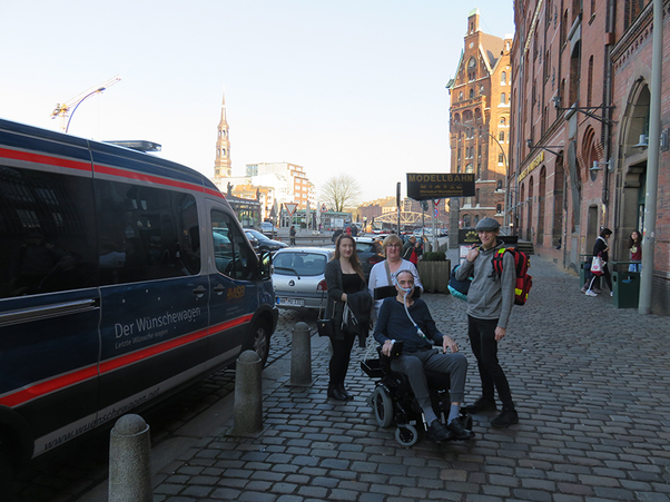Auch wenn der Wünschewagen wie hier beim Miniatur Wunderland oft keinen Eintritt bezahlen muss, ist eine solche Wunschfahrt mit erheblichem Aufwand verbunden und kostet auch Geld. Daher ist der Wünschewagen auf Spenden angewiesen.