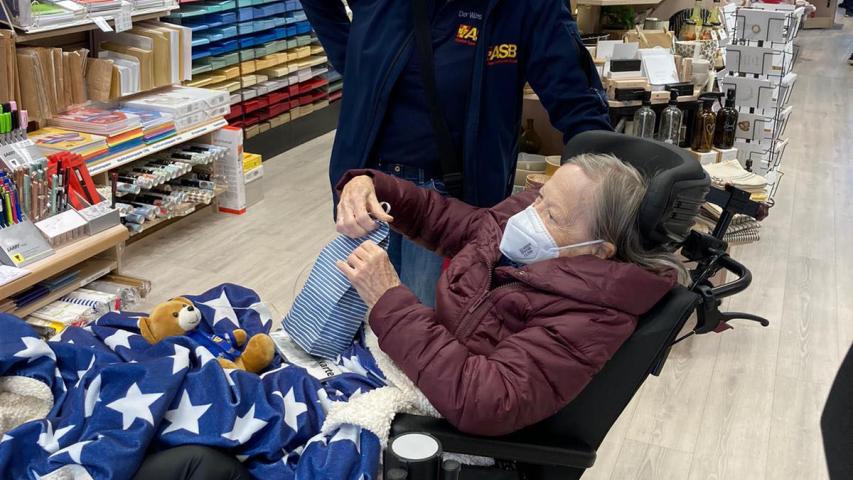 Es gibt viele „Wünschewagen-Phänomene“, eins davon ist die gute Zusammenarbeit der Ehrenamtlichen untereinander. Patrick parkt am Hafen, bereits beim ersten Aussteigen funktioniert alles mit uns und dem ganzen Drumherum prima. Der Rollstuhl lässt sich gut bewegen, auch wenn mir im Laufe des Tages klar wird, dass Kappeln ziemlich hügelig ist. Und, dass es einiges gibt, was ich gar nicht weiß - zum Beispiel, wo der Rollstuhl gerechte Eingang des Fischgeschäfts ist.