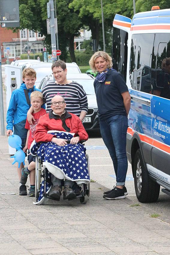 Der schwerkranke 78-Jährige genoss das Zusammensein mit seiner Familie in vollen Zügen, wurde immer fröhlicher und war am Ende richtig zum Schäkern aufgelegt. Auch für unsere Wunscherfüller Ute Uhrbrook und Helmut Hollstein, die ein dickes Lob für den freundlichen und unkomplizierten Umgang erhielten, war es schön, das innige Miteinander in dieser Familie zu erleben. Viel zu schnell verging die Zeit und die Rückfahrt zum Lübecker Rickers-Kock-Haus musste angetreten werden. Ein wunderschöner Tag und bleibende Erinnerungen für alle Beteiligten.