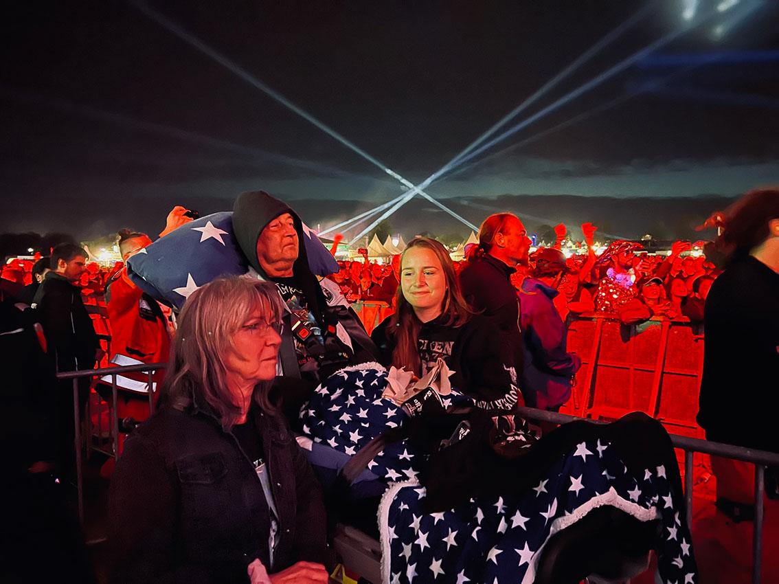 Um 20:30 Uhr schoben wir Michael ein erstes Mal auf der Trage Richtung Bühne. Was für eine Atmosphäre, wenn man zehntausenden Fans direkt gegenübersteht. So viele Eindrücke, Tränen des Glücks, der Freude aber auch der Trauer.