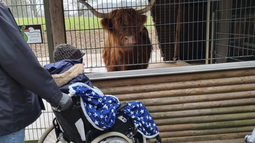 Die Vorfreude war sichtlich spürbar, und umso größer wurde dann die Aufregung, als Frau B. feststellte, dass sie ihren Impfausweis zu Hause auf dem Küchentisch liegen gelassen hatte. Das kann bei der ganzen Aufregung schon mal passieren! Also kurz mit dem Schwiegersohn telefoniert, der mit seinem Wagen und den beiden Enkelkindern vor dem Wünschewagen herfuhr. So wurde sein Auto kurzerhand zum Impfausweis-Taxi umfunktioniert und wir alle trafen uns später vor dem Eingang zum Wildpark wieder.
