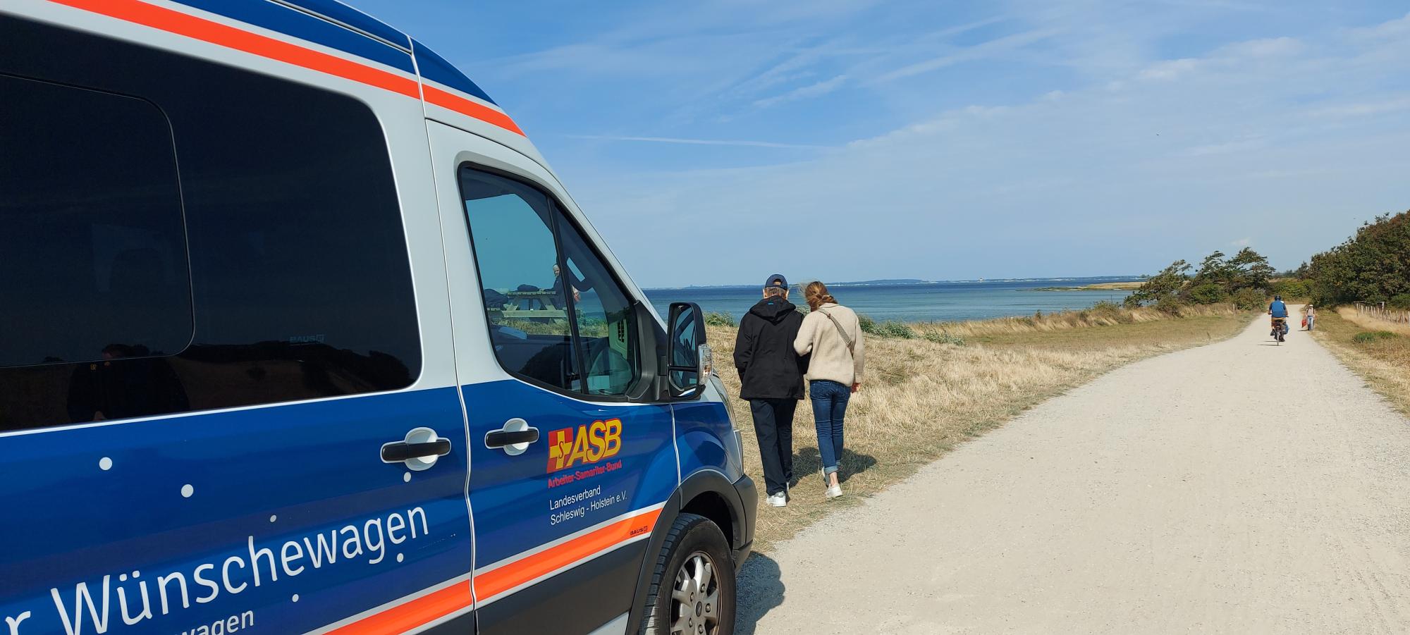 Obwohl es so nah an seiner Heimat Kiel liegt, war er noch nie am obersten Zipfel von Deutschland, von wo aus man Dänemark bestens sehen kann. Marcel und ich holten das Geburtstagskind, seine Lebensgefährtin und Tochter bei bestem Septemberwetter mit dem Wünschewagen in Gettorf ab.