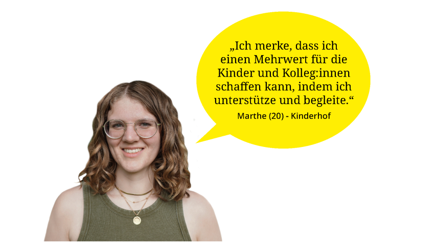 Eine Betreuungseinrichtung mit 75 Plätzen für die Allerkleinsten mit gerade mal einem Jahr bis hin zu den Vorschulkindern bürgt für Abwechslung, für vielerlei Erfahrungen – und allzeit für mächtig Leben in der Bude. Aber nicht nur das. Zwar dürfen die beiden Freiwilligen aus rechtlichen Gründen immer nur loslegen, wenn mindestens eine Fachkraft dabei ist, ansonsten fühlen sie sich aber voll integriert in den Kita-Alltag. „Da spürt man keine Unterschiede“, betonen sie übereinstimmend. „Wir werden genauso einbezogen wie alle anderen.“
